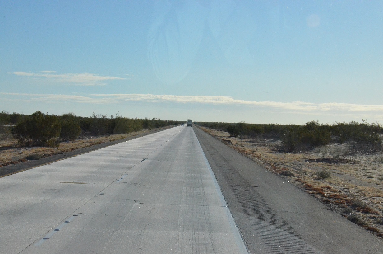 DAY 3 – Once again an early get up. We did sleep one extra hour to give the temperature a chance to warm up. It was really cold and clear again…had to always keep an eye out for ice on the road. We traveled through 3 states today…Arizona, a brief time passing through New Mexico and then into Texas. This truck was near El Paso…got to love it…We drove about 520 miles today…stayed overnight at a Wal-Mart in Fort Stockton, Texas.